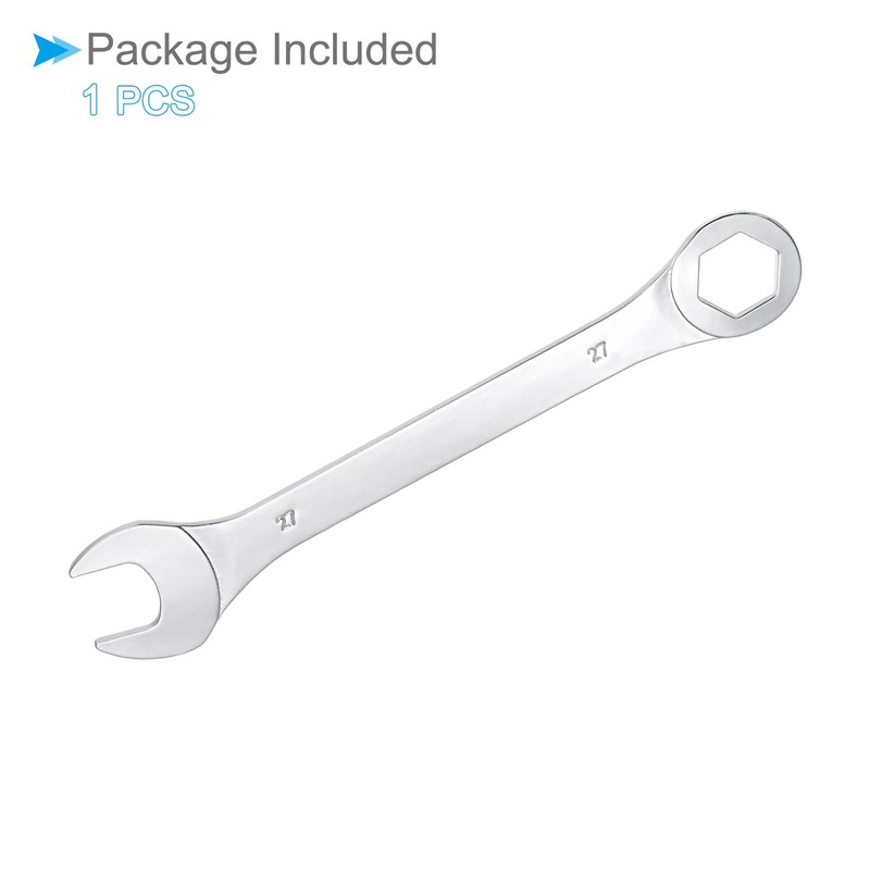 - ★ Combination Wrench Size --- Total Length: 285mm / 11.22", Open End Size: 27mm, Box End Size: 27mm, Material: High Carbon Steel, Finish: Polished, Chrome Plated