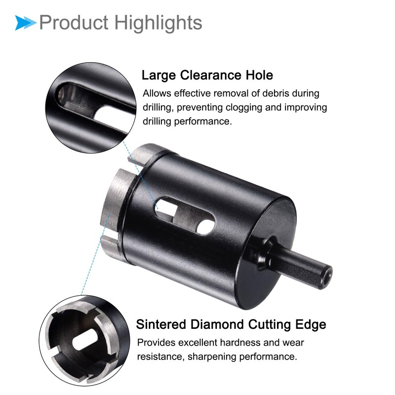- ★ Ease of Use --- The diamond core drill bit is designed with an extended chip clearance slot, allowing for efficient removal of debris during drilling. This feature prevents clogging and enhances drilling performance.