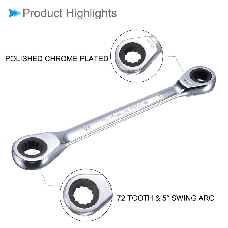 - ★ Ratcheting Wrench Size --- Total Length: 138mm / 5.43"; Double End Size: 8mm, 10mm; Finish: Chrome Plated; Material: Chrome Vanadium Steel (CR-V)