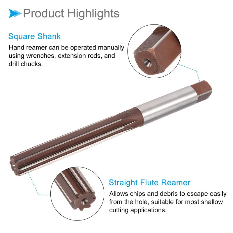 --- The Hand Reamer has a straight shank design, allowing it to be hand-operated with wrenches.