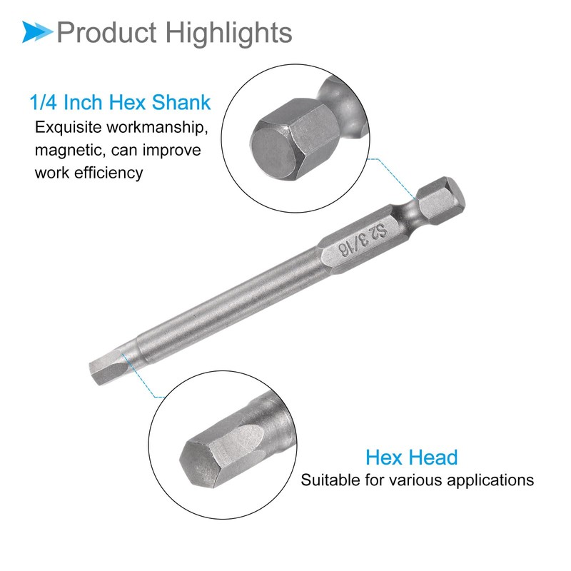 - ★ Hex Screwdriver Bits Size --- Hexagon Head Size: 3/16", Hex Shank Size: 1/4", Total Length: 75mm / 3". You will receive 5pcs hex screwdriver bits in one package,
