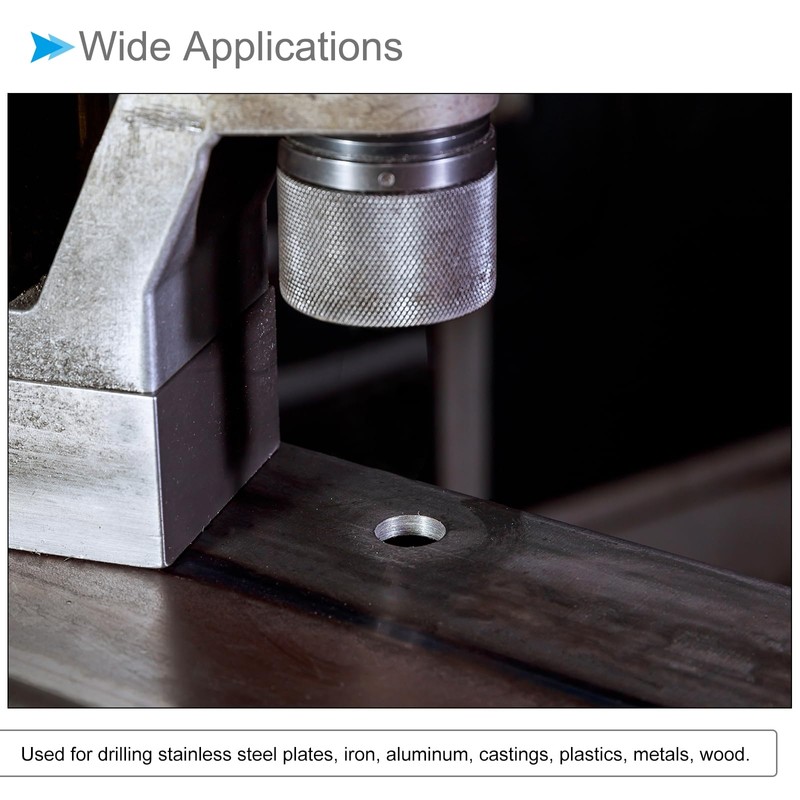 - ★ Wide Applications --- metal hole saw can be used for drilling stainless steel plates, high alloy steel, iron, aluminum, castings, plastics, metals, wood, etc. Suitable for handheld electric drills, beach drills, vertical electric drills, and mobile belt magnetic drills.