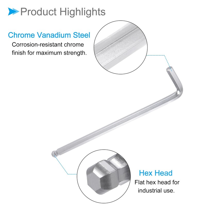 - ★ L Handle --- L-Handle with ergonomic design provides greater torque to loosen and tighten fasteners easily. The long arm key set is suitable for narrow space use. The shorter key end in the handle is suitable for high-torque applications.