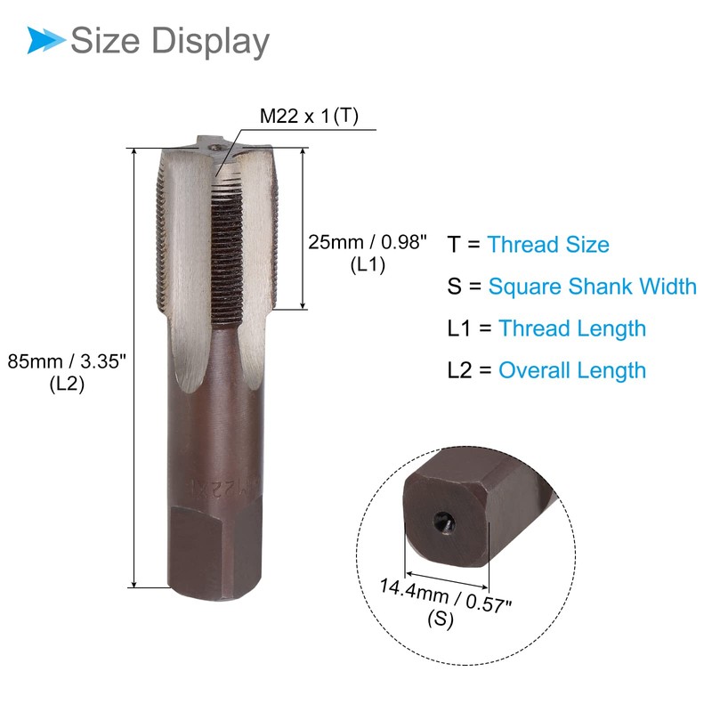 - ★ Manual Tap Dimension---Thread Size: M22 x 1 (Right Hand); Square Handle Width: 14.4mm; Screw Length: 30mm; Overall Length: 85mm