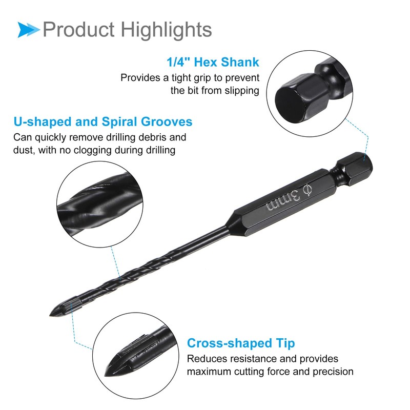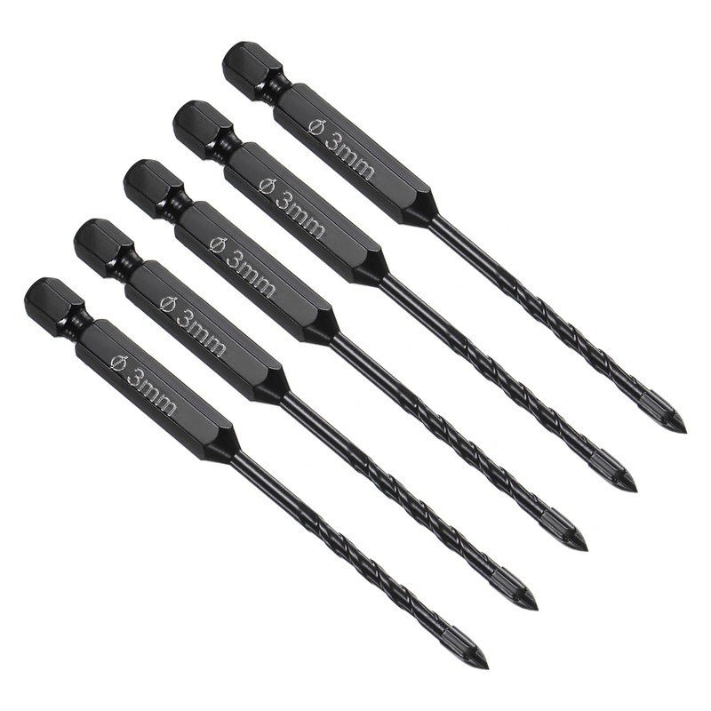 - ★ Professional Masonry Drill Bits Size --- Cutting Dia.: 3mm / 0.12", Shank Type: 1/4" Hex Shank, Overall Length: 89mm / 3.5".