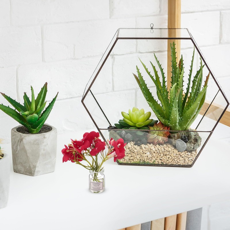 • Silk Fabric & Plastic --- The flower part is made of polyester silk fabric and plastic, greener and beautiful, and does not easily fade. The vase is made of glass, which is transparent and lovely. Mini size and realistic shape.