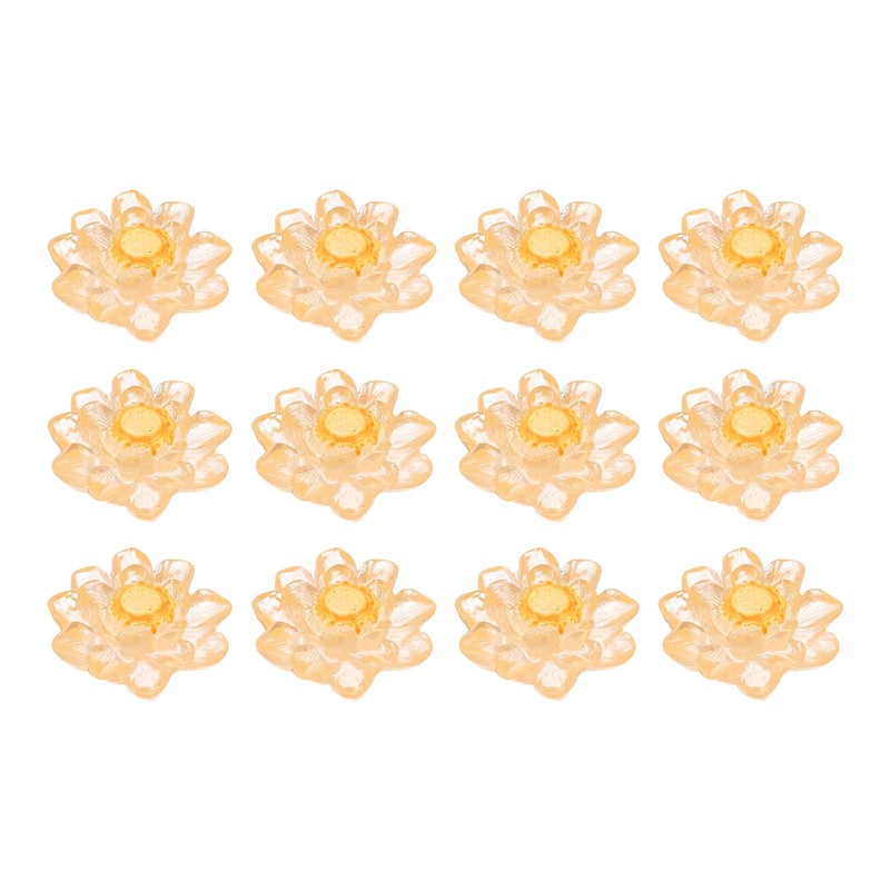 CoCud Mini Resin Flower, 0.94" Diameter, Miniature Tiny Lotus Dollhouse Transparent Orange - (Applications: for Fairy Garden Dollhouse Party Favors Micro Landscaping) 12-Pieces