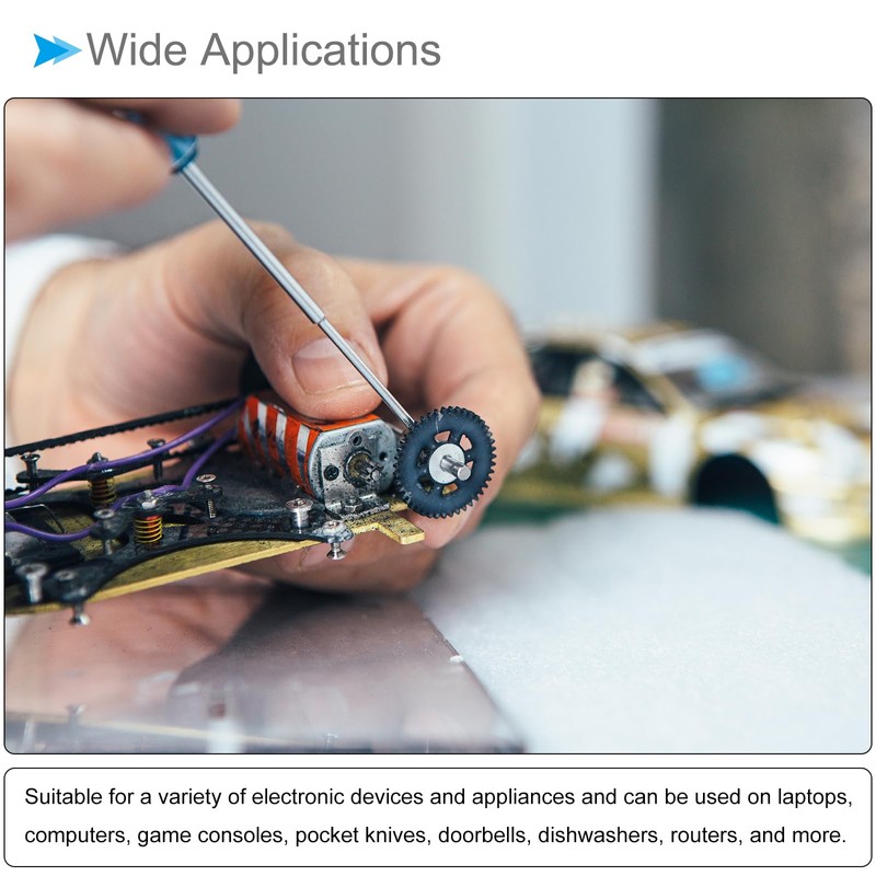 - ★ Wide Applications --- This screwdriver is a multifunctional tool suitable for a variety of electronic devices and appliances and can be used on laptops, computers, game consoles, pocket knives, doorbells, dishwashers, routers, and more.