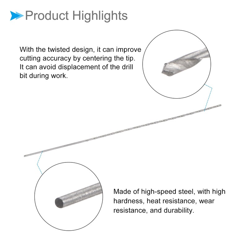 - ★ Twist Drill Bit Size --- Drill Bit Diameter: 0.8 mm; Shank Diameter: 0.8 mm; Blade Length: 50 mm; Total Length: 80 mm