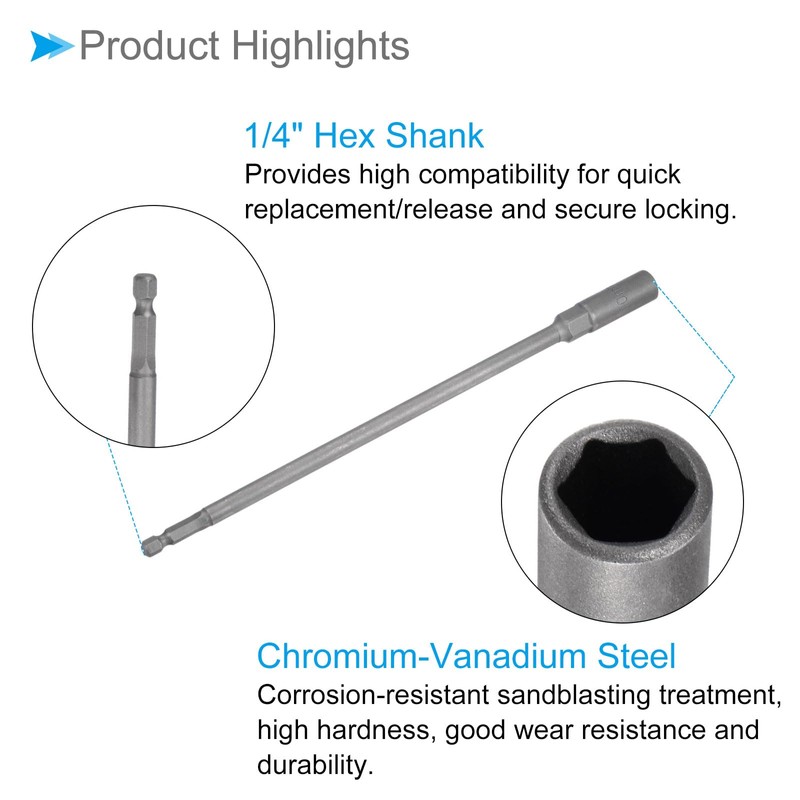 - ★ Nut Driver Size --- Socket Size:10mm, Hex Shank Size: 1/4", Total Length: 250mm.