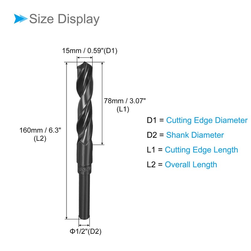 - ★ Drill Bit Size --- Blade Diameter : 15mm Shank Diameter: 12.7mm; Blade Length: 78mm; Total Length: 160mm; Hardness: HRC62-65; Tip Angle: 135 degrees; Cutting Direction: Right Hand