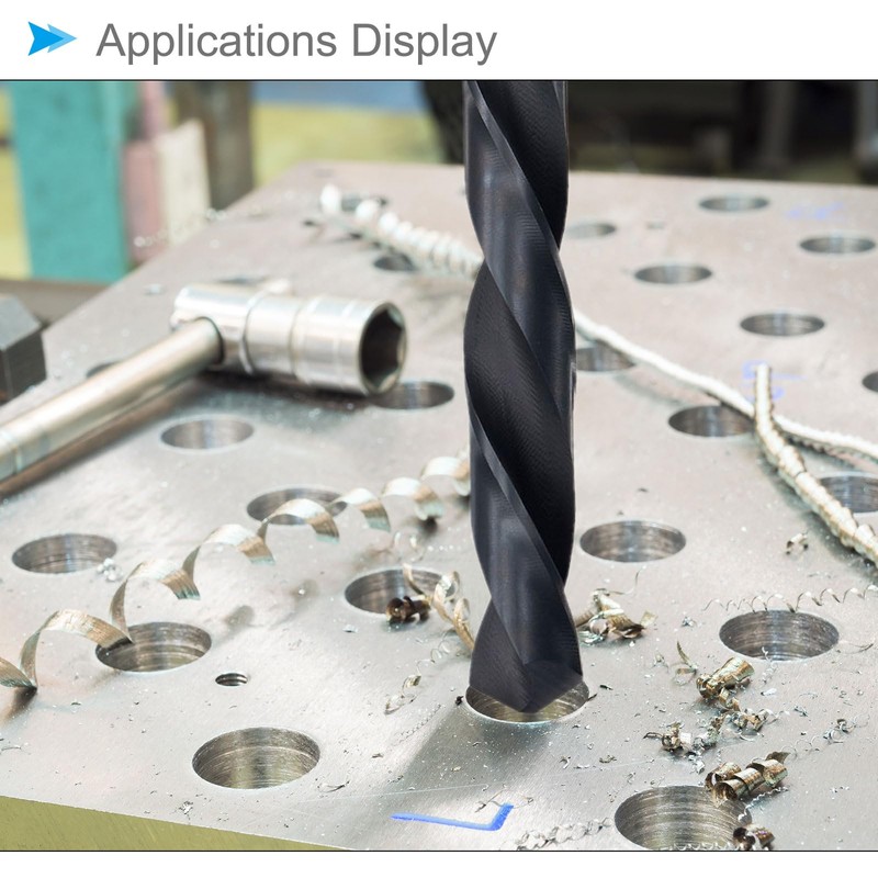- ★ High Performance Steel --- The straight shank drill is made of high speed steel 6542 with great hardness, toughness, strength and wear resistance. The black oxide process increases hardness, rust protection and abrasion resistance.