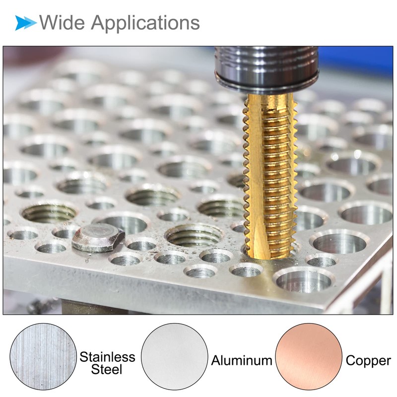 - ★ Wide Application --- Suitable for processing through-hole internal threads. Spiral point and straight flute design, rapid downward chip removal. Make new threads or re-thread damaged threads in stainless steel, ordinary steel, copper, aluminum, iron, alloy steel, plastic.