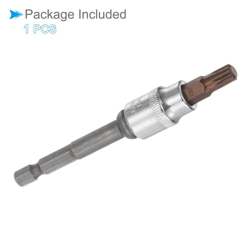CoCud Spline Bit Socket, M8 Bit 3/8" Drive 2" Length, CR-V Socket with Socket Extension - (Applications: for Fastener Application)