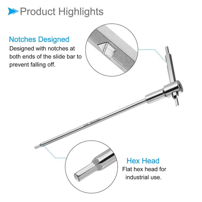 CoCud T-Handle Hex Key, 2.5mm Hex, CR-V Steel Metric Sliding Handle Key Wrenc...