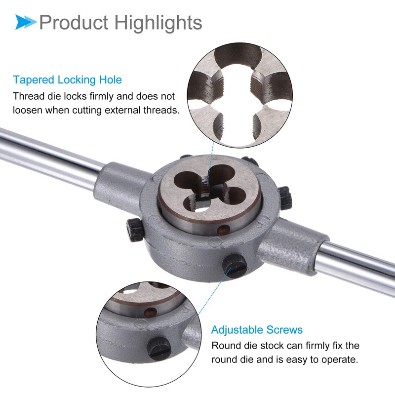 - ★ Versatile Applications --- The thread die and die wrench set is widely used for repairing, cutting or creating threads on screws, pipes, fittings, rods or other cylindrical objects. Suitable for machining stainless steel, aluminum alloy, cast iron, copper, iron, aluminum and plastic.