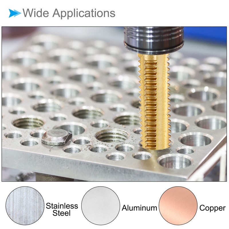 - ★ WIDE APPLICATION --- For threading through holes and shallow stop holes. 3 straight groove design, rapid downward shavings disbursement New creation of stainless steel, ordinary steel, copper, aluminum, iron, alloy steel, plastic female threads or rescrew damaged female threads