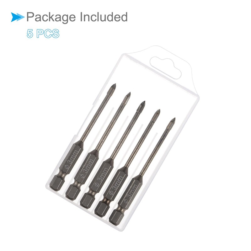 - ★ Professional Masonry Drill Bits Size --- Cutting Dia.: 3mm / 0.12", Shank Type: 1/4" Hex Shank, Overall Length: 74mm / 2.91".