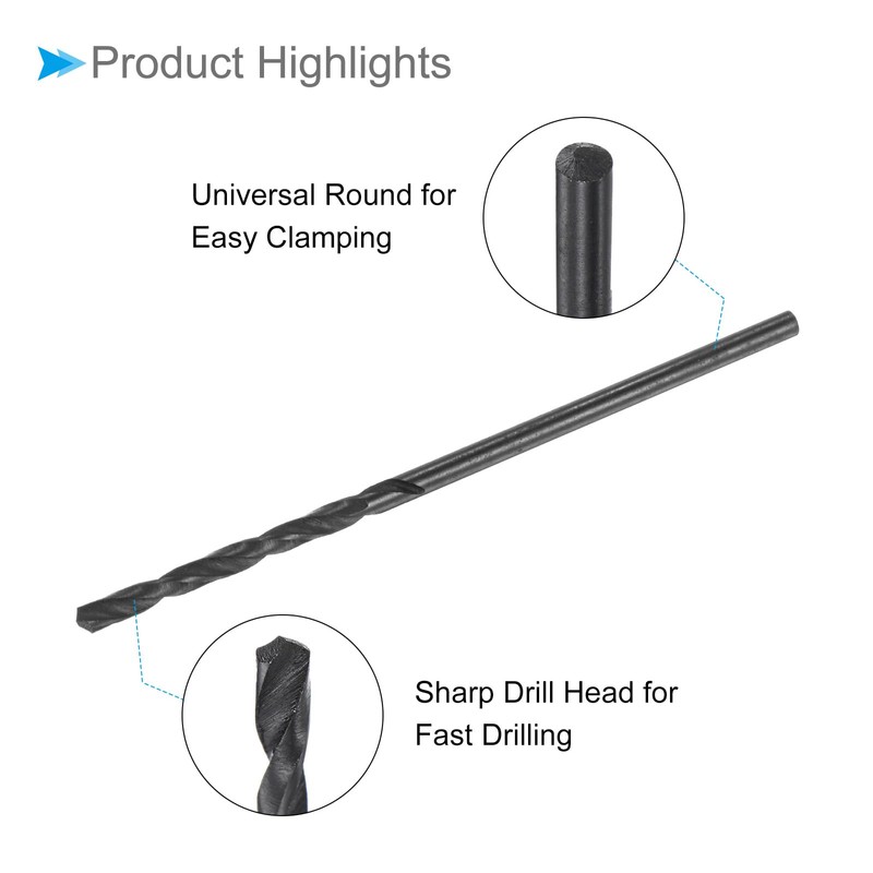CoCud Twist Drill Bits, 1.6mm Cutting Diameter 0.06" Shank, High-Speed Steel Black Oxide Coating Jobber Bit Set (Applications: for Metal Wood Plastic), 10-Pieces