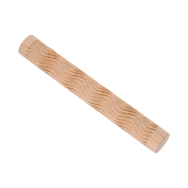 CoCud Wood Clay Roller, 6" Length, Beech Wood Wave Texture Non-Stick Clear Texture No Handle Embossed Rolling Pin - (Applications: for Clay Baking Fondant DIY)