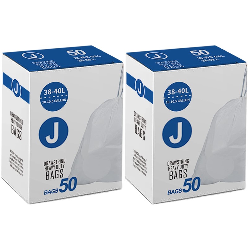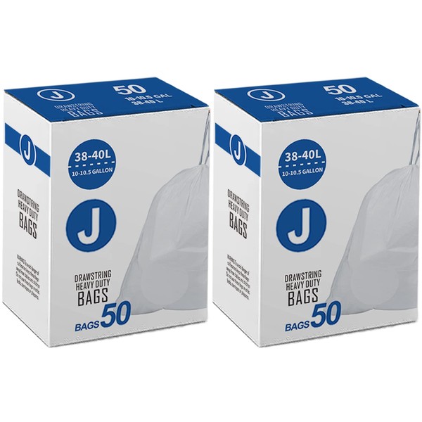 Code J 10-10.5 Gallon Custom Fit Trash Bags Compatible with simplehuman Code J | 1.2 Mil 10-10.5 Gallon / 38-40 Liter Drawstring White Garbage Can Liners Heavy Duty 50 Count 2 Pack 100 Count TOTAL