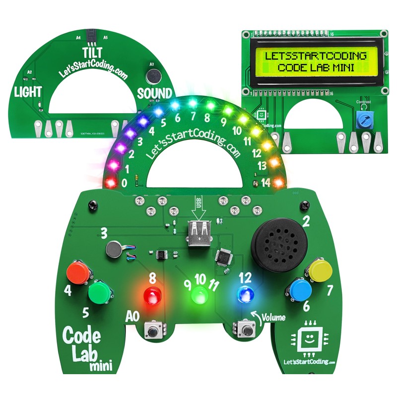 - Expand your Code Lab Mini kit with new projects and capabilities that you can only get with an LCD screen. Pre-written example code gets kids started and launches them into their own coding projects.