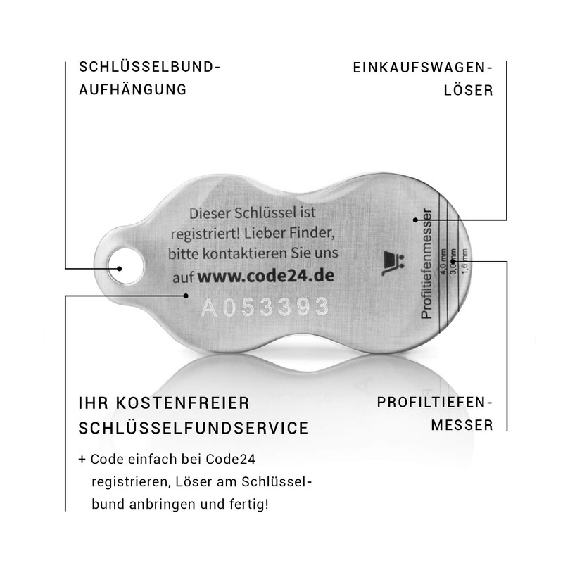 Code24 shopping trolley token key fob with finder service (may not be available in all countries).