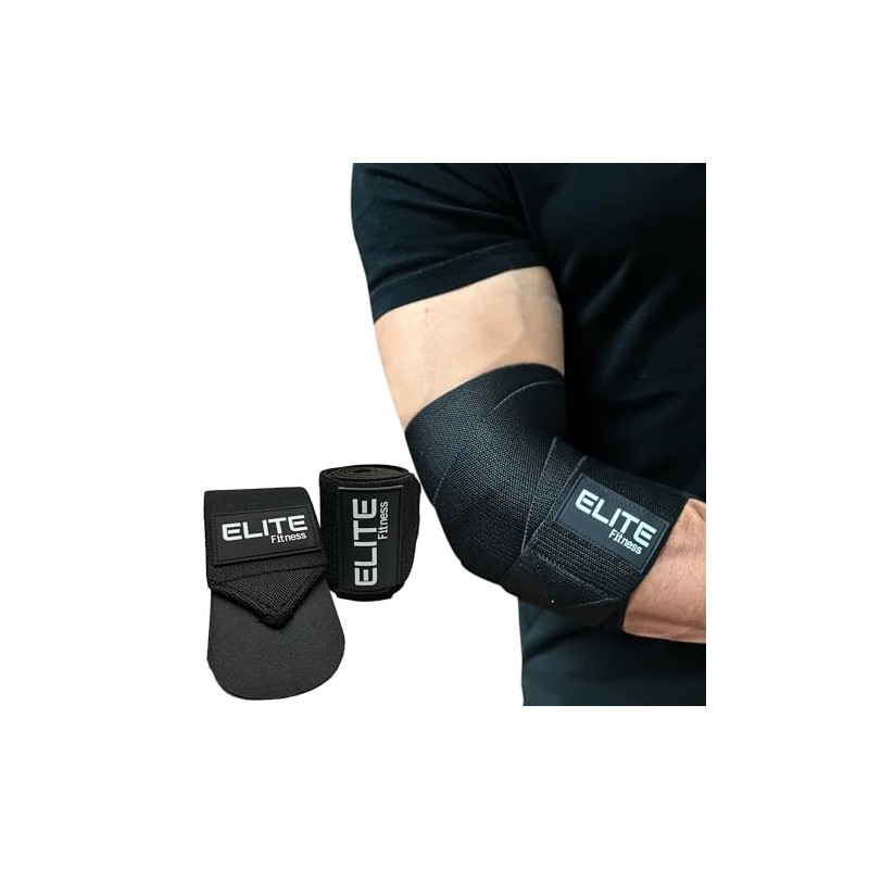 Coderas para gimnasio y levantamiento de pesas, vendas de codo para gym (Negro)