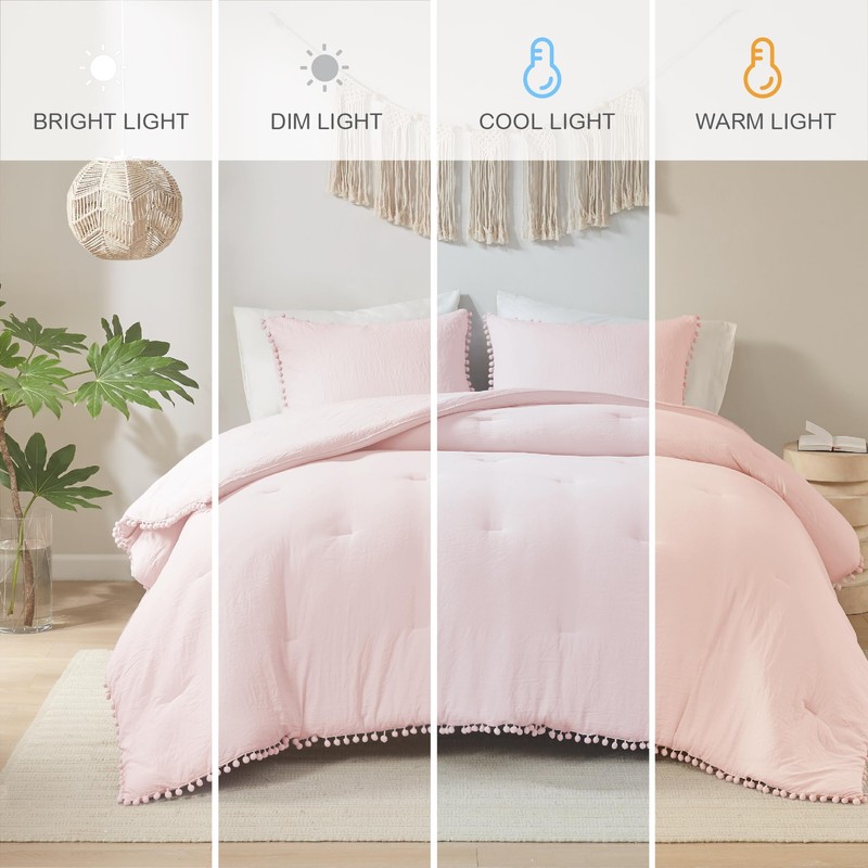 - CUTE POM POM DESIGN: Solid bedding sets look chic and vintage, inviting a more stylish and sophisticated atmosphere to your room. On the other hand, cute handmade pom poms make the room more vibrant and bohemian. The pom pom fringe aesthetic comforters are an excellent decoration to match your home style.
