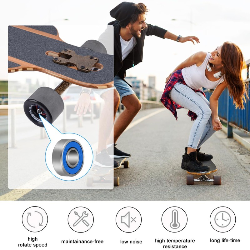 - Skateboard ball bearings are equipped with non-contact removable protective devices that facilitate cleaning and lubrication. Users can easily disassemble the protection for cleaning and maintenance, which significantly reduces friction, improves operating efficiency and ensures good performance after prolonged use.