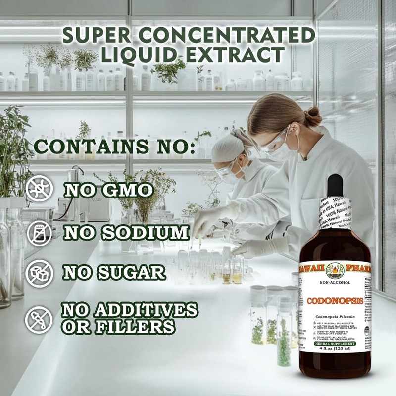 - 100% Natural, Alcohol-Free & Pure: Trust in Hawaii Pharm’s commitment to excellence. Our Codonopsis Extract is a 100% natural, alcohol-free product, free from additives, colorants, flavorings, and sugars. This ensures you receive the purest form of the herb without any unwanted ingredients. Our rigorous quality control measures guarantee the highest standards of purity and effectiveness, providing you with a product you can trust.