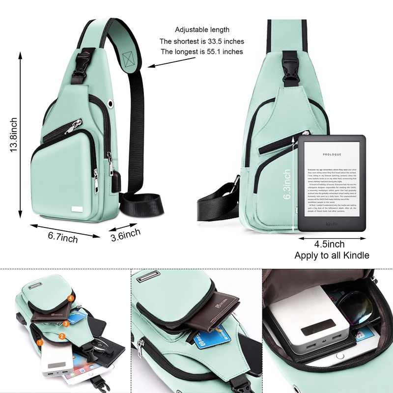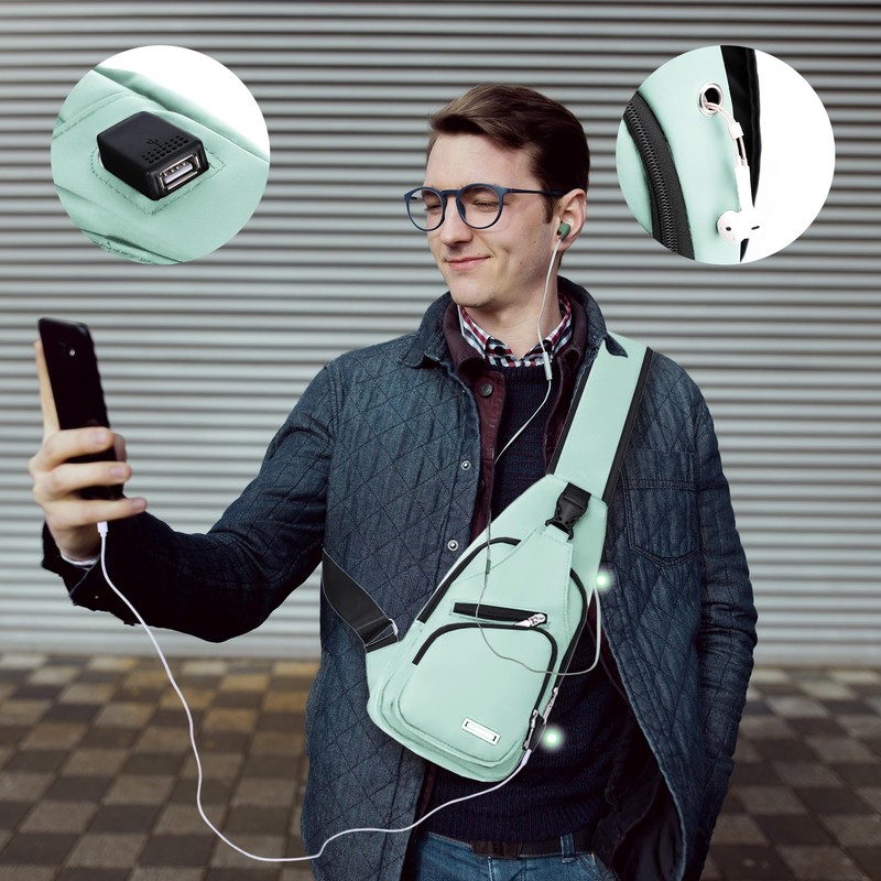 - USB Charger Port & Headphone Hole: Cross body bag with USB Charging Port & Headphone Hole(without portable charger),You may charge your mobile phone easily with the USB charing port (using the implanted USB cable connect your potable power supply). A Mobile Phone Pocket in shoulder strap makes you convenient for charging and listening while walking