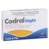 Codral Night Cold & Flu is a temporary relief for headaches and fever, body aches and pain, blocked or runny noses and sore throat. Allows rest.