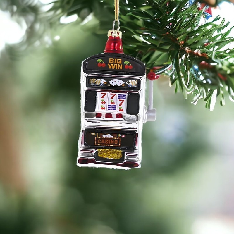 Cody Foster & Co Las Vegas Slot Machine Ornament - Hand-Painted Glass, Casino-Inspired Holiday Decor, 5 Inches