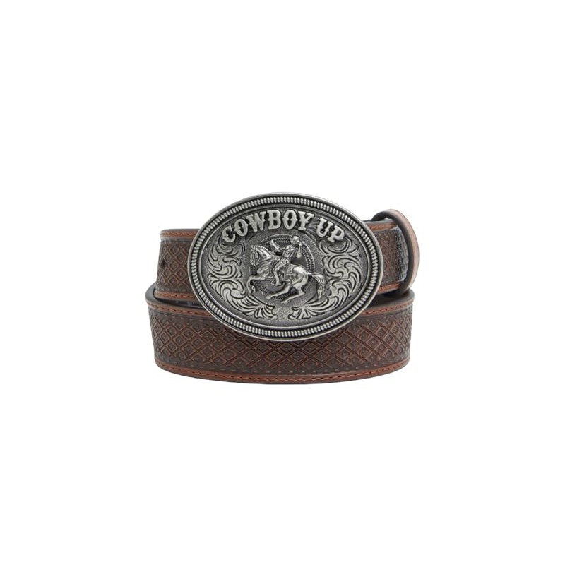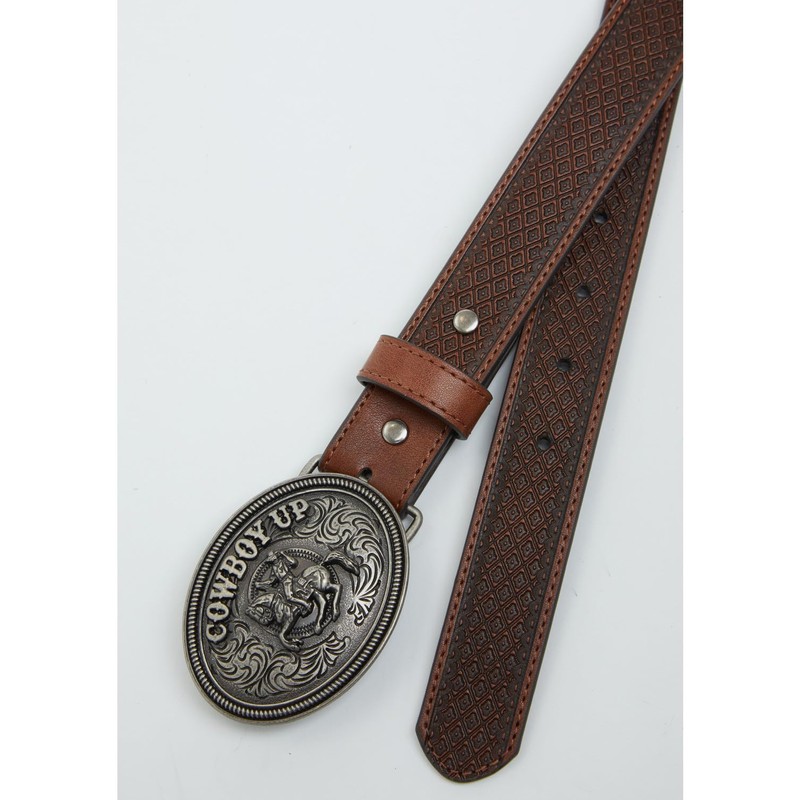 Cody James Boys' Basket Weave Cowboy Up Buckle Belt Brown 28