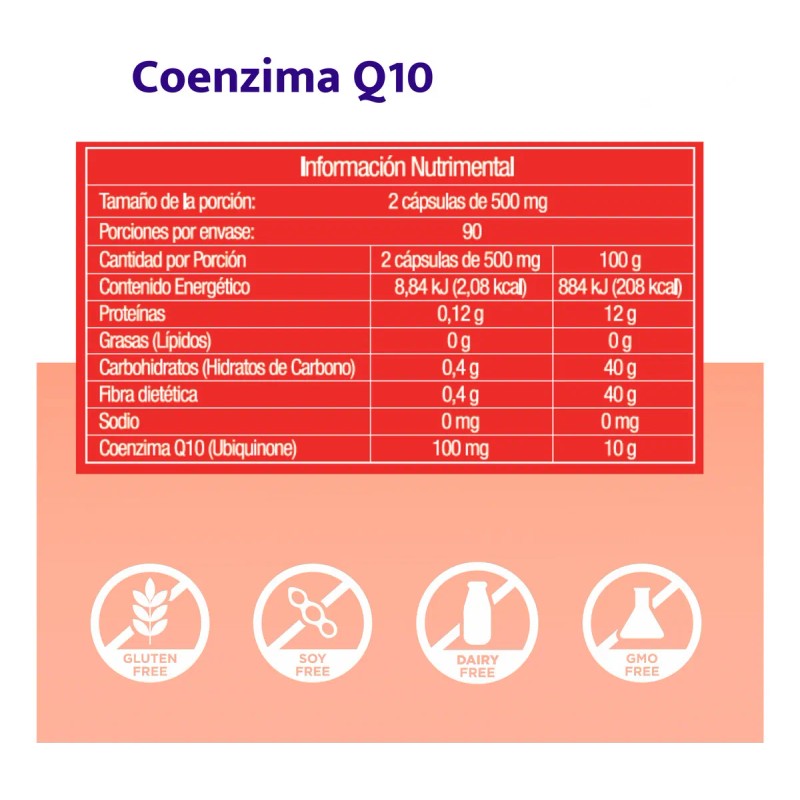 Este suplemento aporta 100mg de Coenzima Q10 por porción, contribuyendo a mantener niveles adecuados de CoQ10 y proporcionando energía.