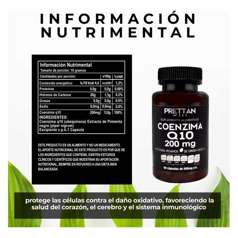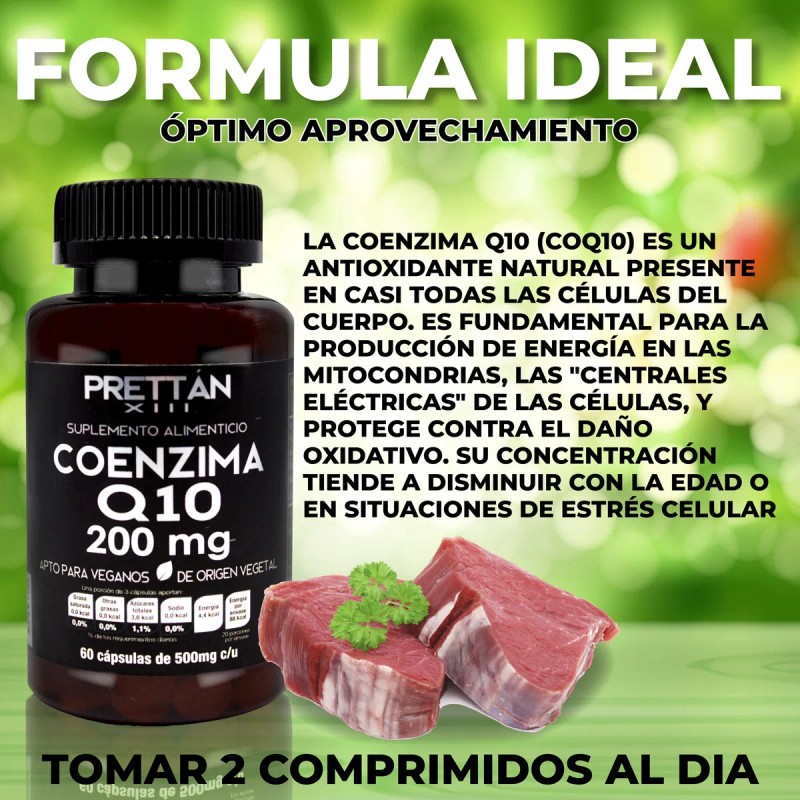 ¡Activa tu energía desde el interior! 🔋💊 La Coenzima Q10 de Prettan potencia tus niveles celulares, fortalece tu corazón ❤️ y apoya una vida llena de vitalidad. Cada cápsula de 500 mg contiene ubiquinona pura, lista para ayudarte a rendir al máximo 💪🌿