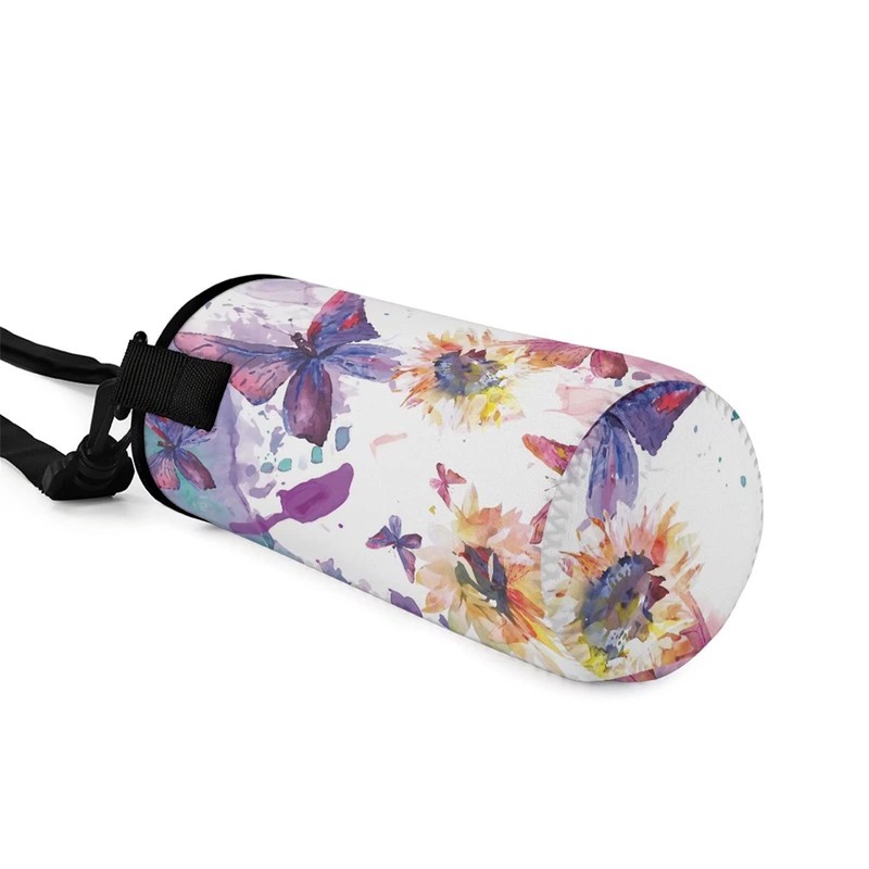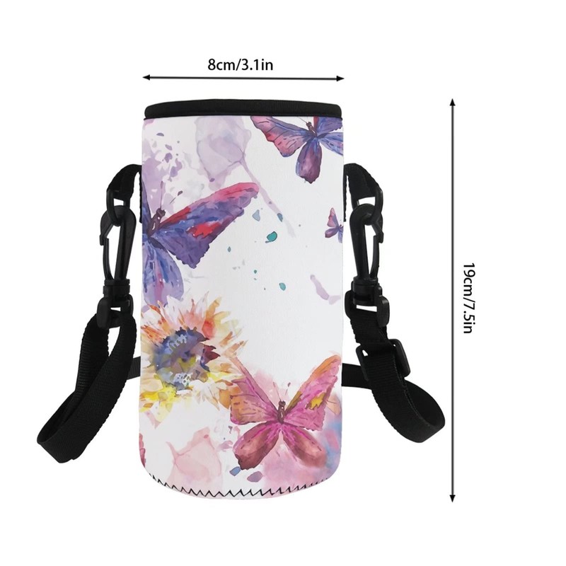 COEQINE Water Bottle Carrier Bag Case, Insulated Neoprene Water Bottle Holder with Adjustable Shoulder Strap for Men Women Kids Hiking,with Sunflower Butterfly Pattern