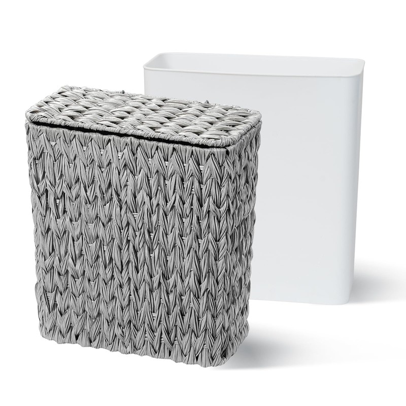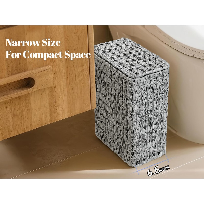 Coeusy 3 Gallon Wicker Trash Can,Grey Bathroom Trash Cans with Lid,Waterproof Slim Waste Basket for Bedroom,Home Office,Narrow Garbage Can with Removable Liner
