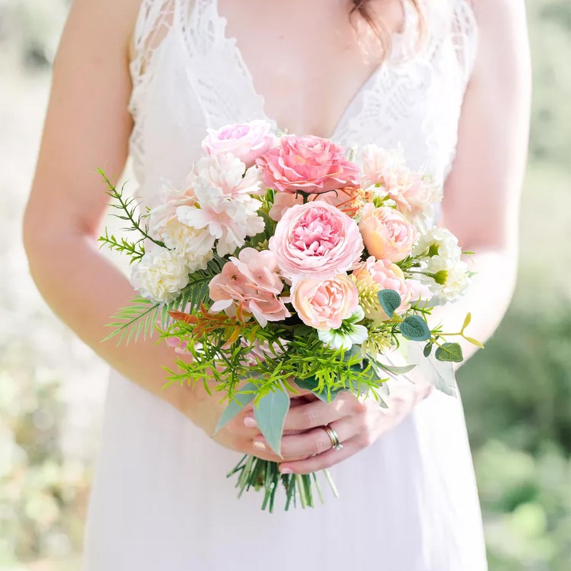 - Ideal Size and Composition: Standing approximately 13.3 inches tall, this artificial bouquet is ideal for silk flowers for home decor indoor, weddings, or special occasions, adding a soft, romantic touch.