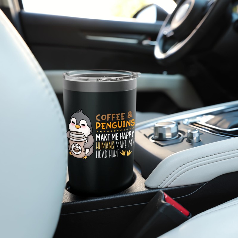 Coffee And Penguins Make Me Happy Funny Seabird Lover Stainless Steel Insulated Tumbler