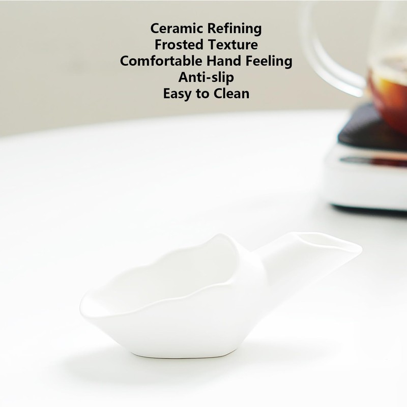 Coffee Bean Measuring Scoop with Funnel Coffee Bean Dosing Cup Ceramic Ground Coffee Spoon for Coffee Tea Sugar Flour (White)