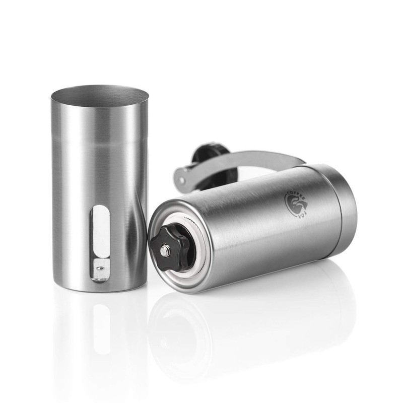 Coffee Fox® Kaffeemühle aus Edelstahl und Keramik Mahlwerk - Manuelle Handkaffeemühle für Zuhause, Reisen, Büro