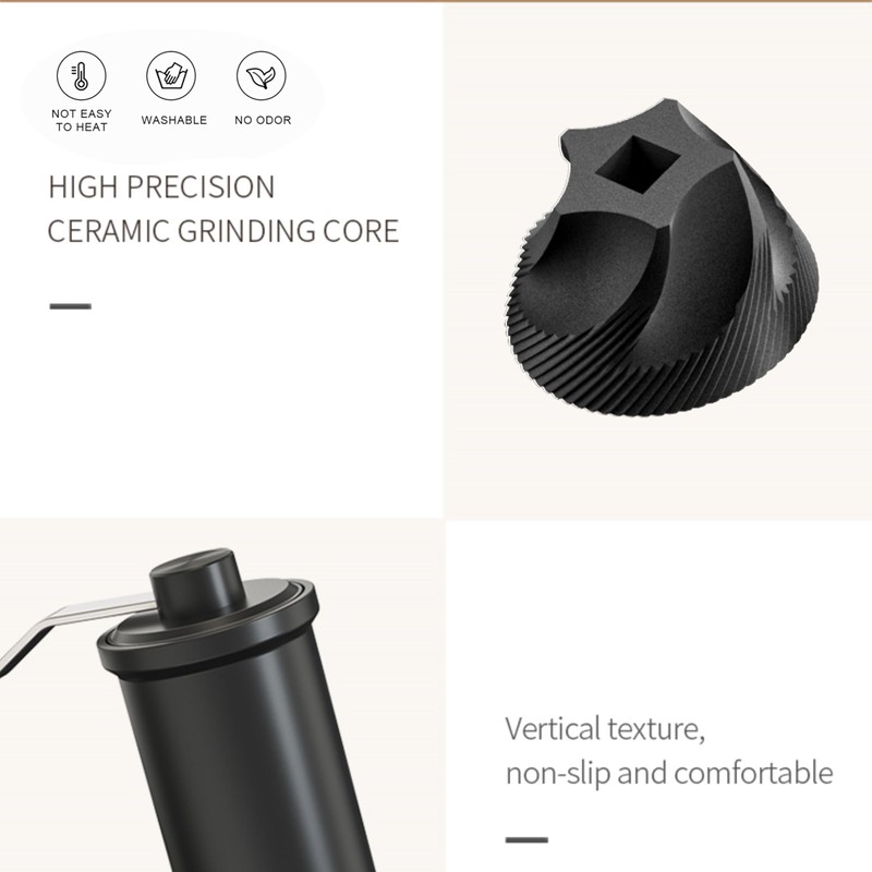This manual coffee grinder is convenient to use and easy to operate,with a classic appearance and high-quality quality. Ceramic burrs have longer grinding time and longer service life.