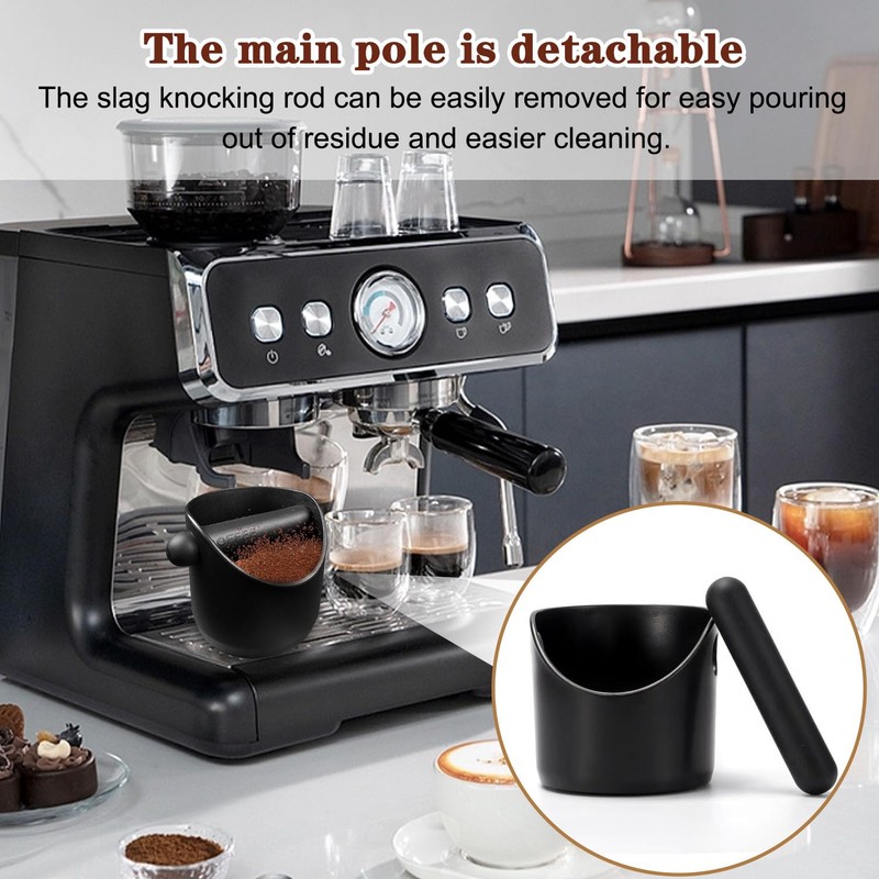 • Modern design: espresso knock box has a simple design in classic black. The removable knock bar can effectively improve the spraying effect of coffee powder and reduce the noise during use.