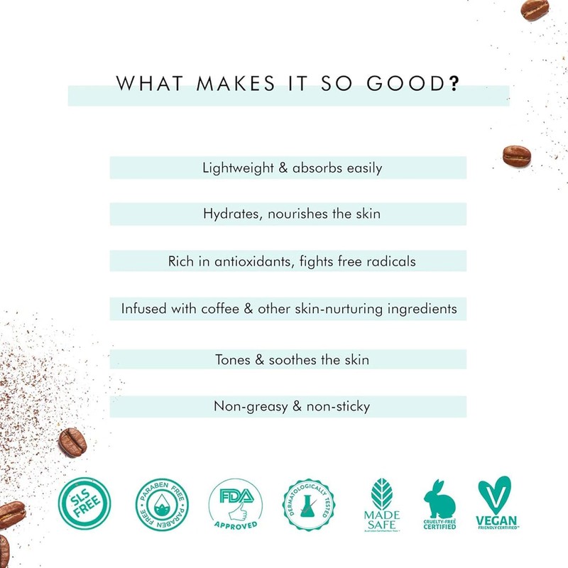 - POWERFUL INGREDIENTS: Enriched with coffee, caffeine, vitamin E, white water lily, and hyaluronic acid for comprehensive skincare benefits