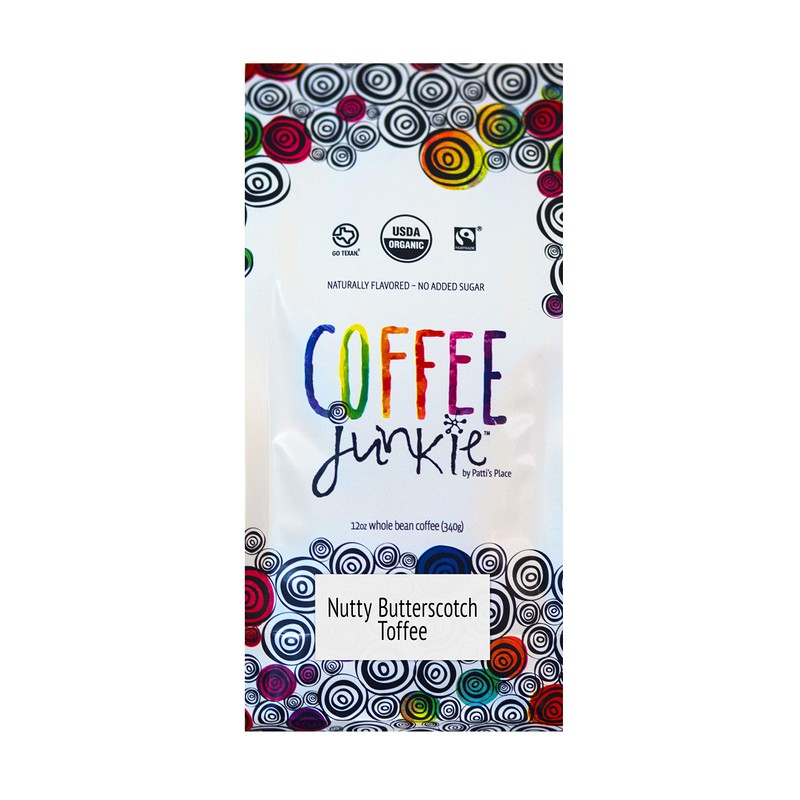 Coffee Junkie Nutty Butterscotch Toffee Naturally Flavored Organic Coffee Beans - 2 LB - Ground