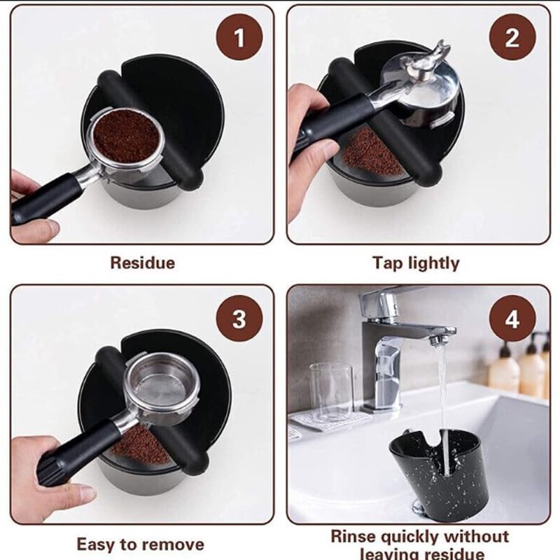 - 【Practical Design】With the anti-slip design at the bottom, the espresso dump bin is not slipping during use or scratching your kitchen counter, more stable when knocking slag. The corner edge coffee tamp is 5.59 X 5inch large, not take up a lot of table space, corner design can be used on table and counter for tamping to protect counters and portafilters from damage.