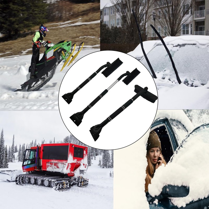 • Adjustable length and angle: the telescopic pole is adjustable (65-80 cm) and the brush head can rotate 360° to clear snow from different angles.