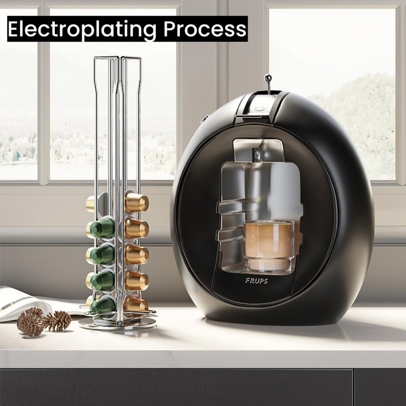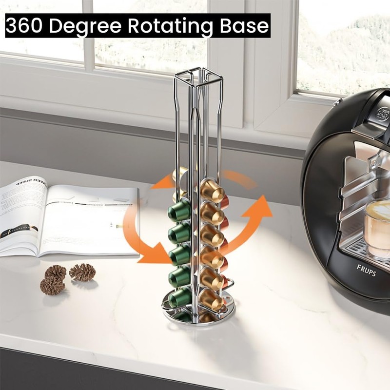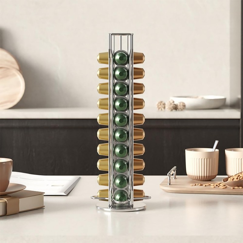 Keep Your Coffee Pods Neatly Organized with Our Rotating Metal Stand!